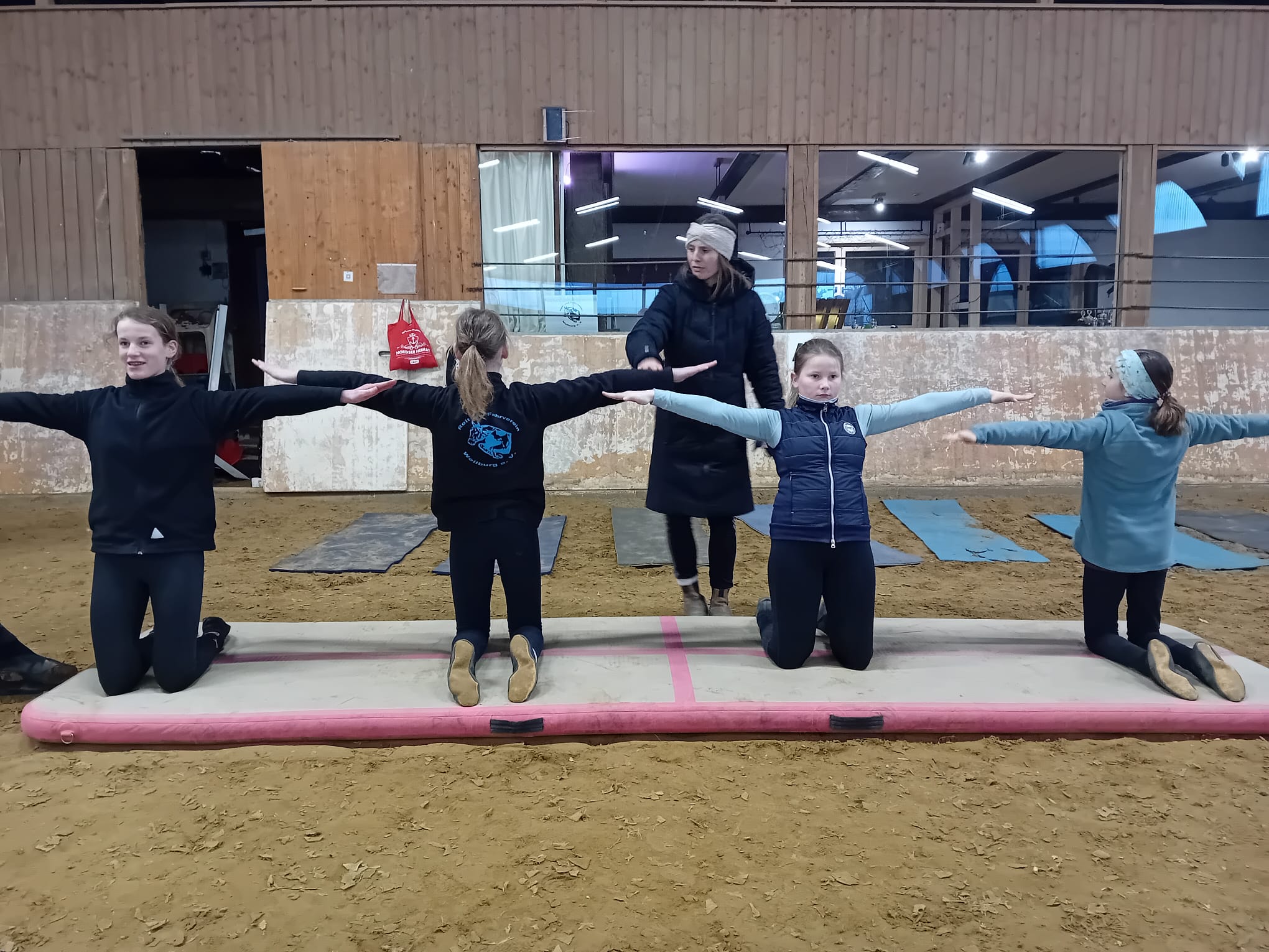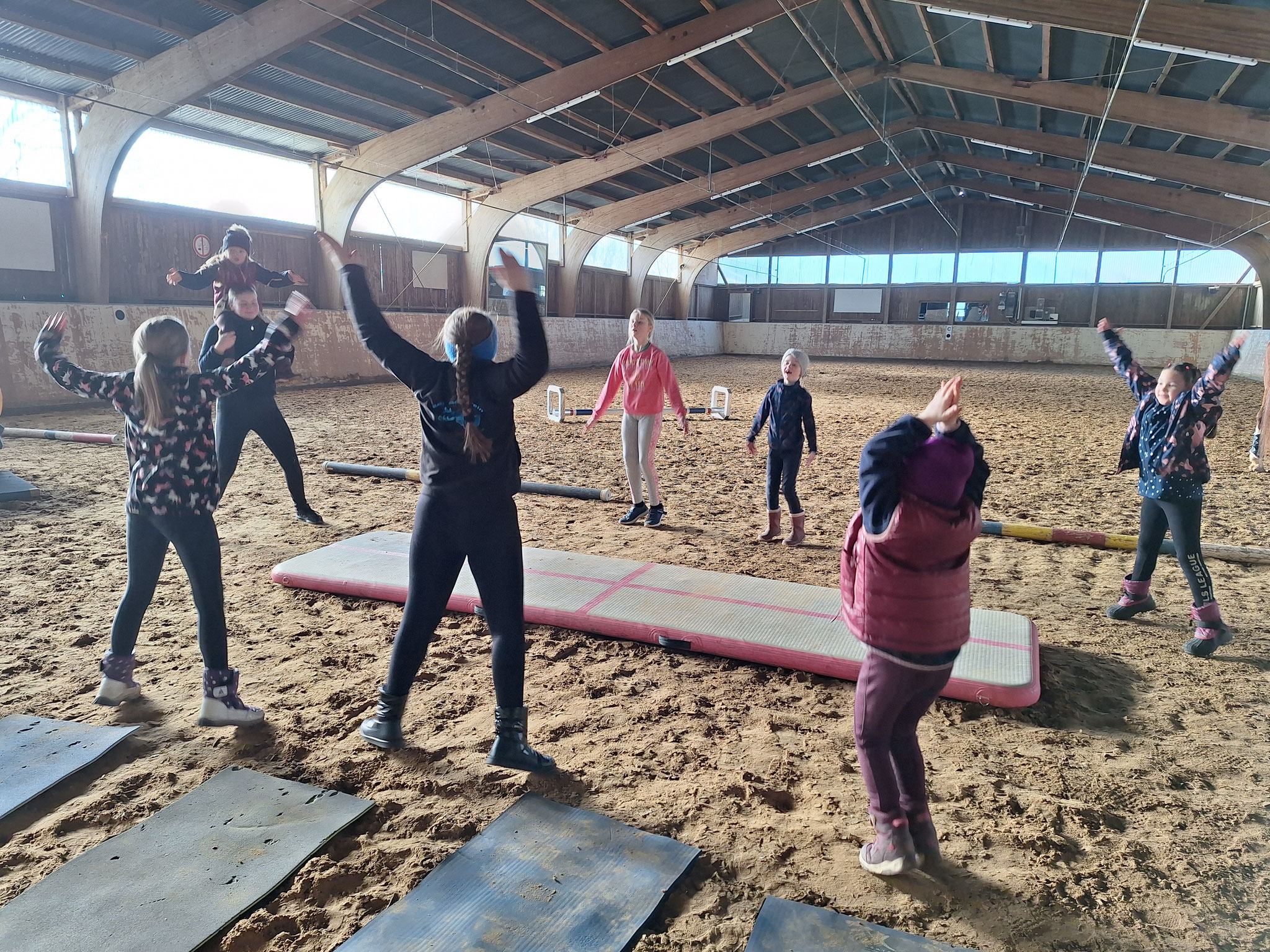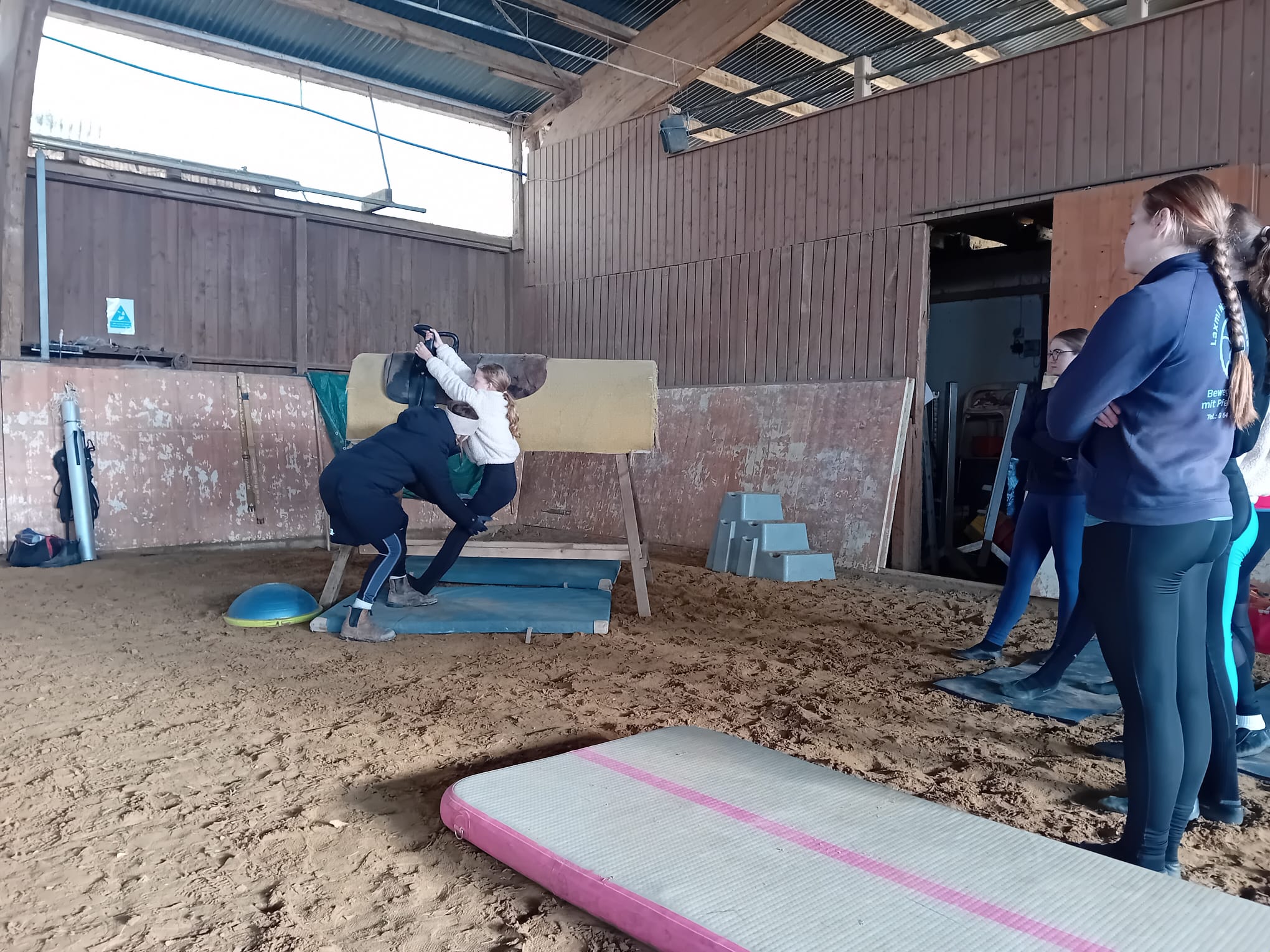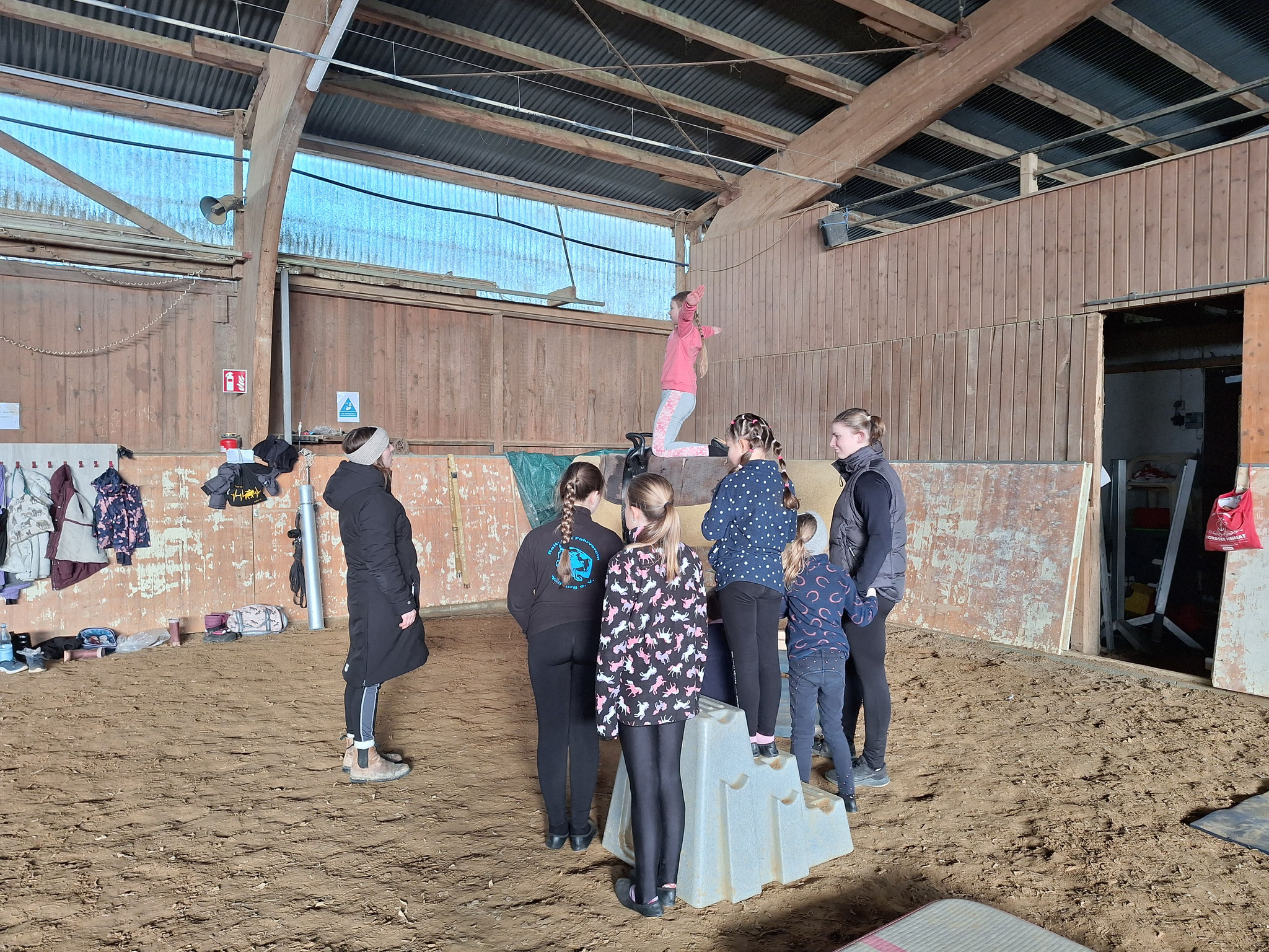 Mit einem zweitägigen Lehrgang haben sich unsere Voltigruppen auf die demnächst startende Turniersaison vorbereitet. Anna Specht, Voltitrainerin und -richterin aus Allendorf (Eder) war am 08. / 09. Februar 2025 bei uns auf der Anlage und hat bei jeder Gruppe individuelle Übungen in Pflicht und Kür unter die Lupe genommen. Voltis und Trainerinnen bekamen für das weitere Training wertvolle Hilfestellungen. Besonders Sprungkraft und Körperspannung standen im Fokus und wurden gezielt mit neuen Übungen gefördert. Anna hatte viele Ideen mitgebracht, mit denen alle bei ihrem individuellen Trainingsstand abgeholt wurden. So hatten alle Gruppen viel Spaß beim Training und waren engagiert und konzentriert bei der Sache.